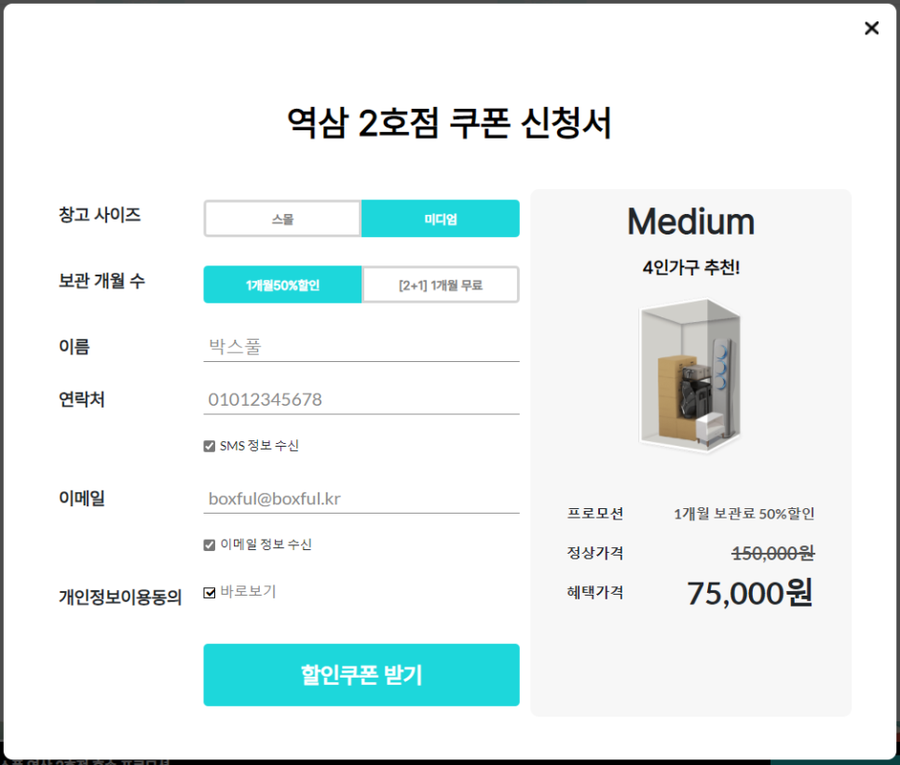 박스풀 역삼2호점 할인쿠폰 받는 방법은