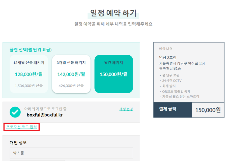 현재 박스풀 #공유창고 역삼2호점은 사전예약 이벤트 진행중이며