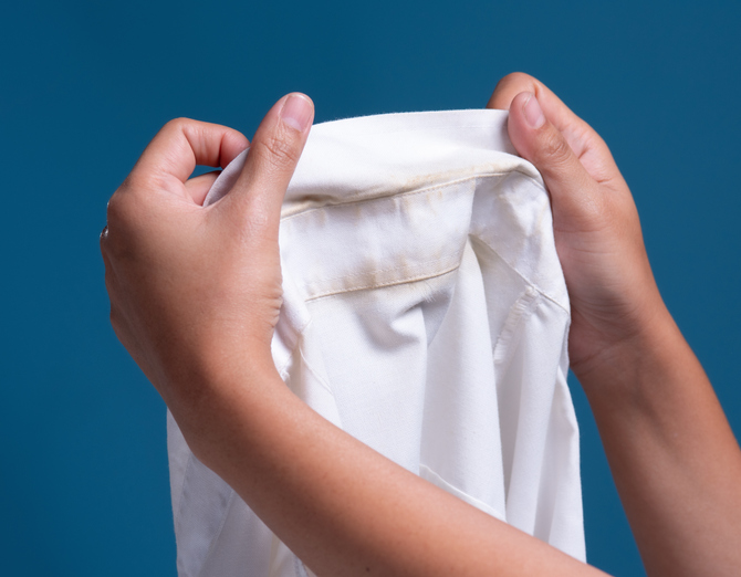 땀이 묻은 여름철 빨래를 방치하게 되면 누렇게 변색되는 현상이 심해지고
