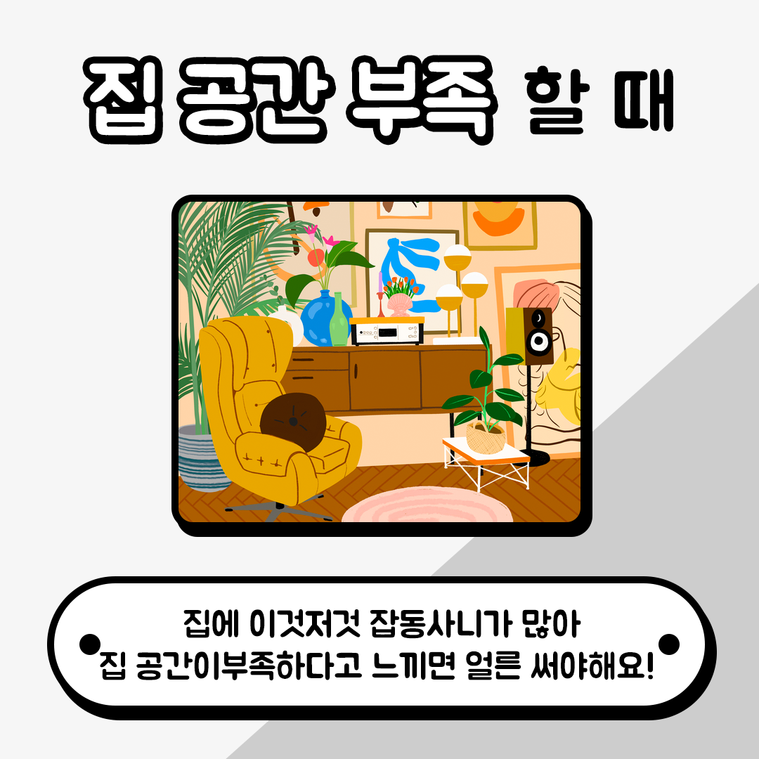 집이 좁다고 느껴진 게 실제로 좁아서 그렇게 느끼는 것이기 때문에 조금 더 집공간을 늘리고 싶다면 셀프스토리지를 이용해서 좁은 집을 넓고 쾌적하게 사용하는 것이 좋아요!